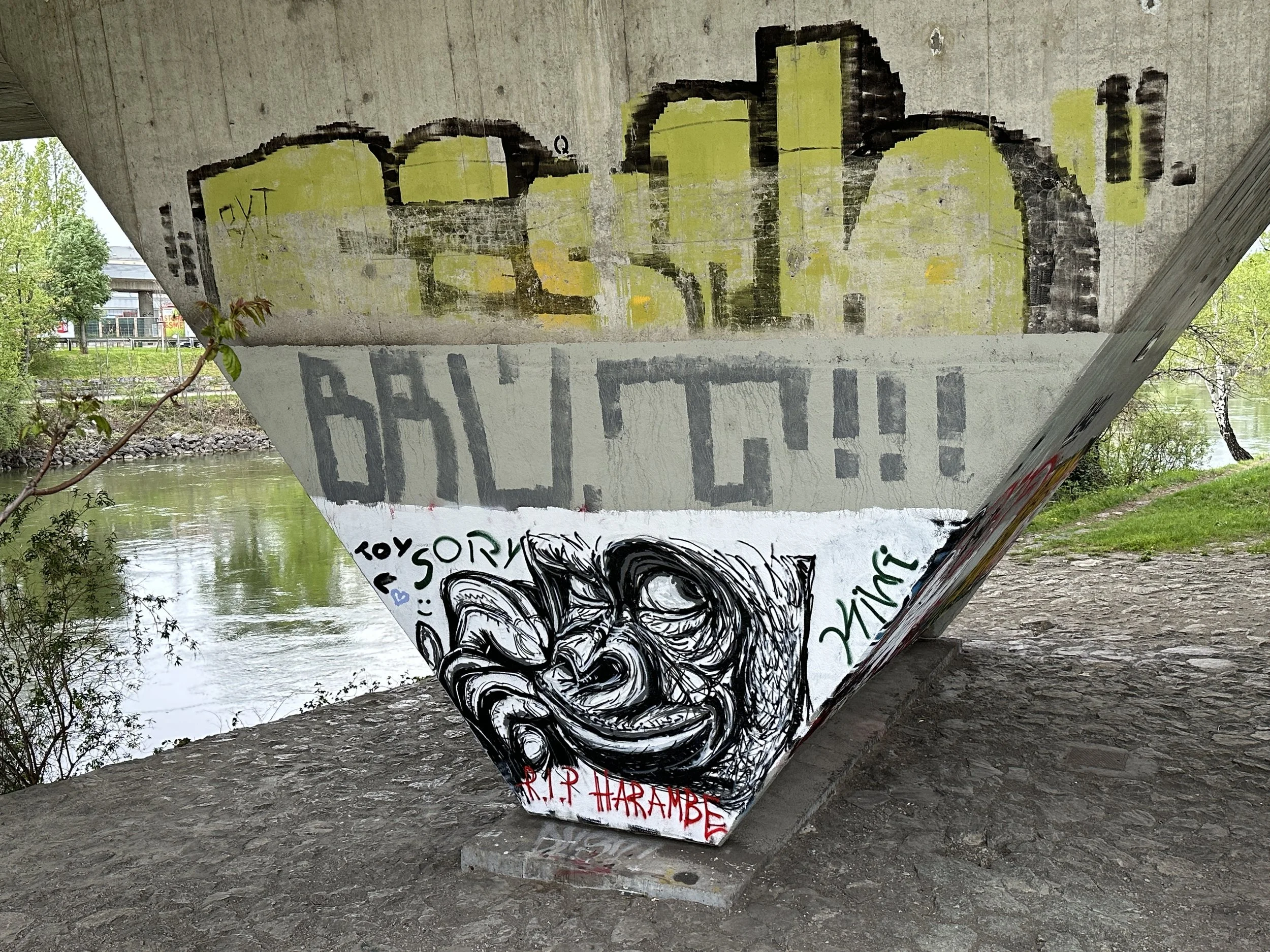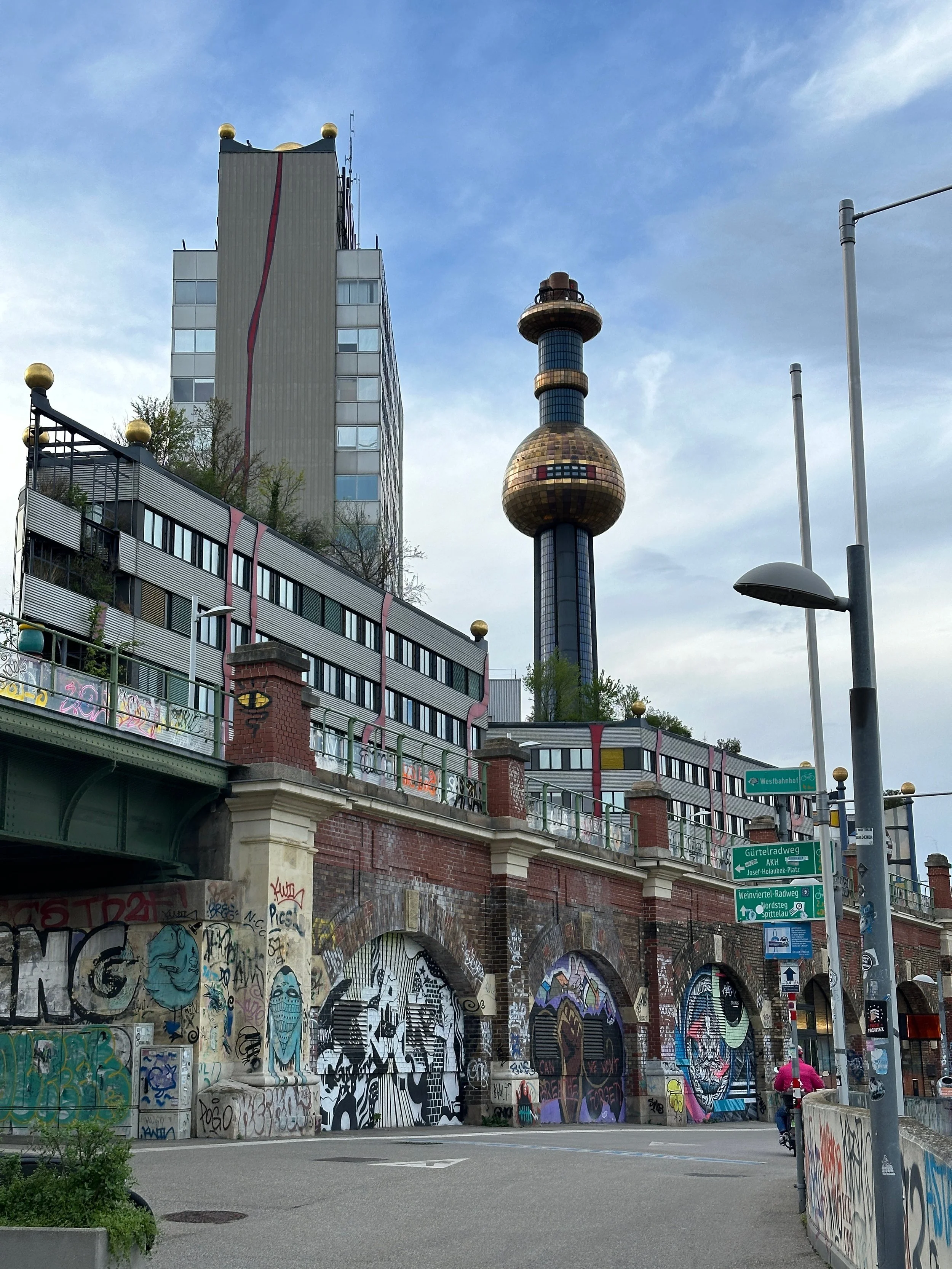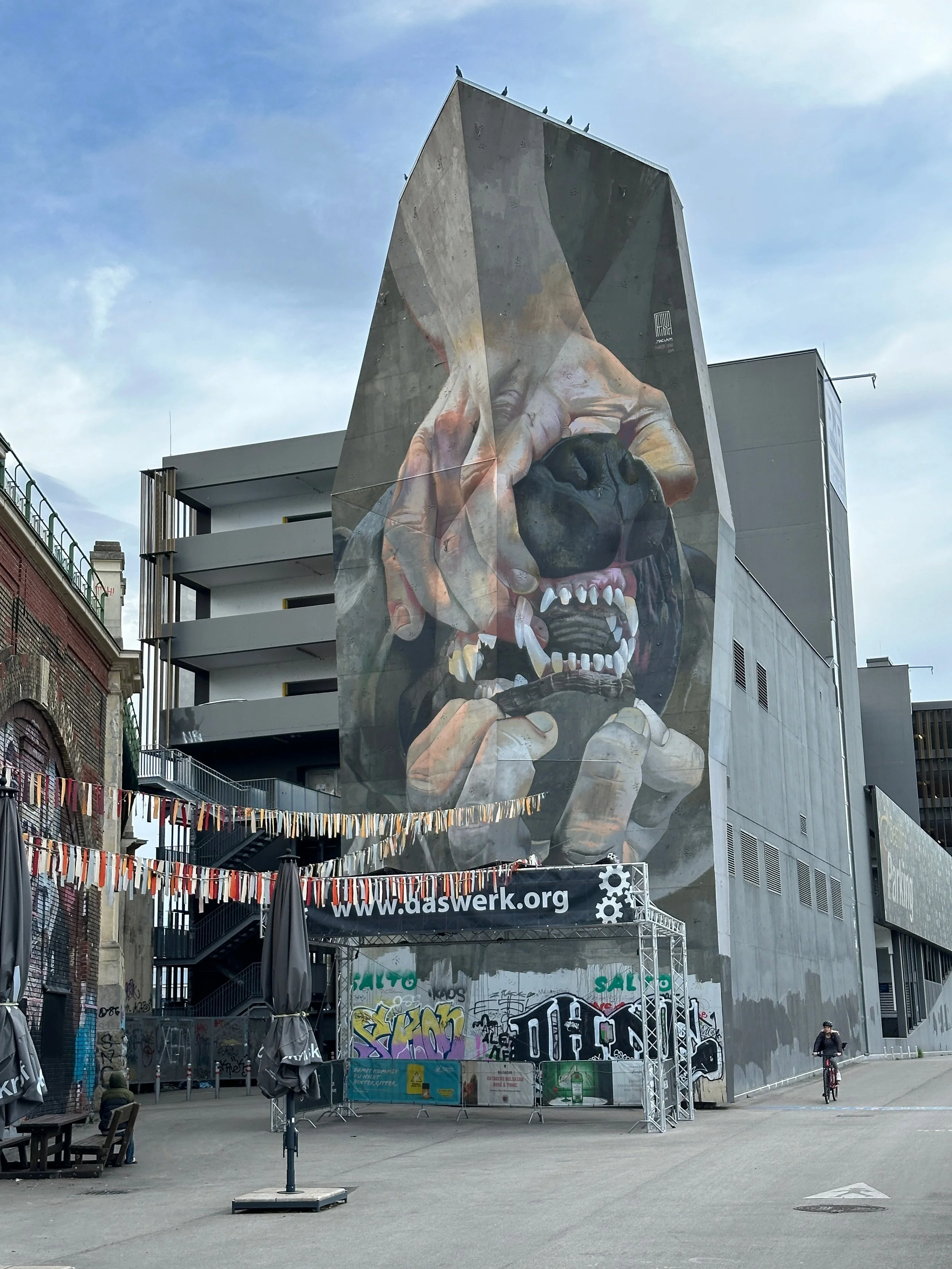 The highlight of Vienna was the Donaukanal. It was an offshoot of the Danube River that split off into its own canal for a couple miles before rejoining with its parent. The wide banks of this canal were elevated over the waters, but still a good ~30 feet (~10 meters) below the city streets. The promenade was paved but had plenty of benches, tables, and portions of grass, which altogether created a recreational walking area with plenty of little places to stop and have a picnic or get a beer at a mini bar. The coolest part of this area, by far, was the actual miles of graffiti lining either side of the promenade’s walls. It was an endless string of impressive urban art. I started to stroll along the promenade, listening to my Spotify Discover Weekly playlist (this updates regularly with new music). Plenty of bikers and runners whizzed past me as I stopped to take photos every hundred feet or so. I’ll let the art speak for itself: