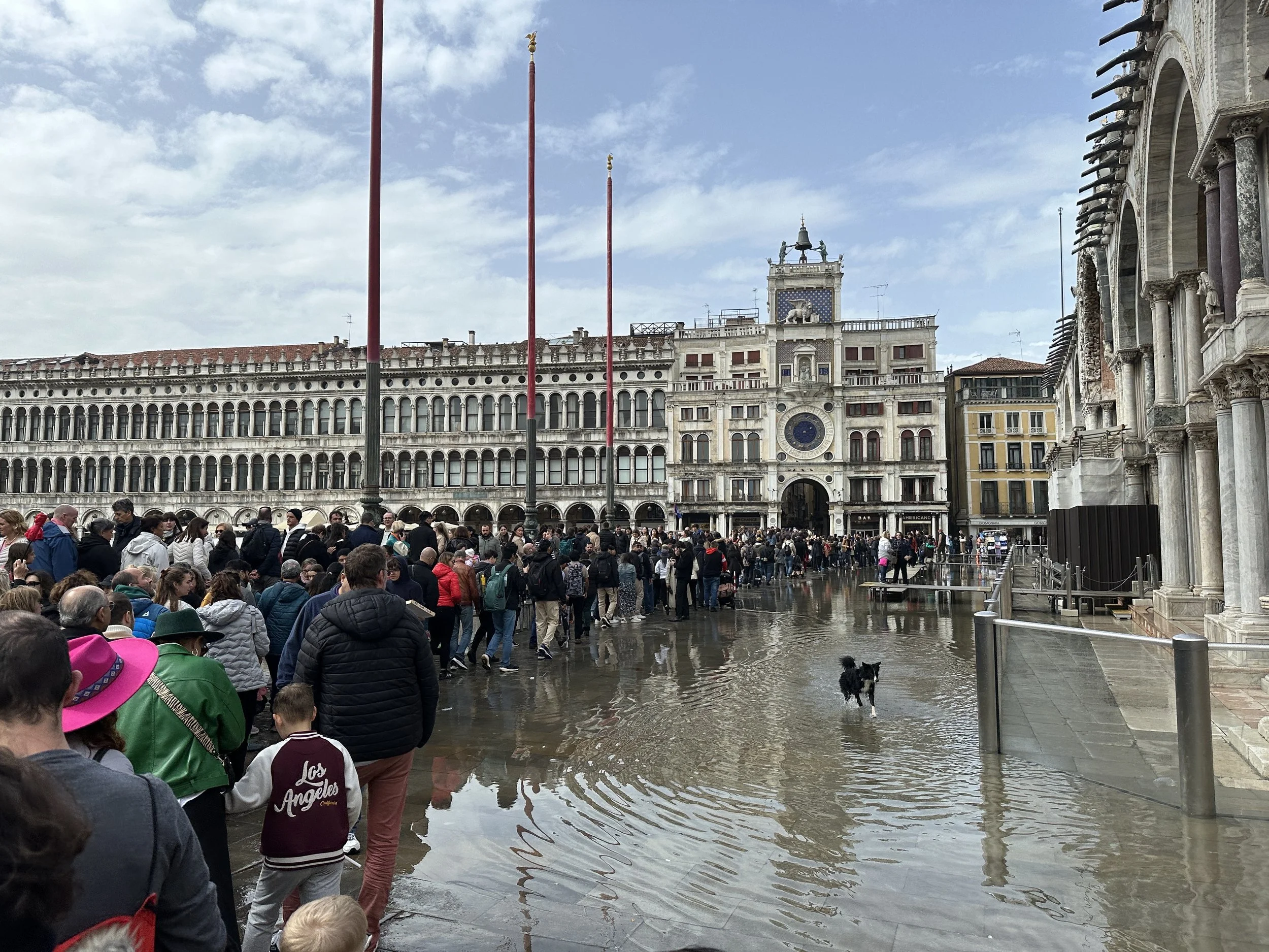 The coffee was not the issue here. I decided to check out Lido, a nearby island to Venice, so I could walk along the beach and ponder my life decisions. It rained quite a bit while I was there, so when I returned to Piazza San Marco, various sections of the plaza had large puddles of water, roughly 1-2 inches (2-5cm) deep. Alright sure, puddles after rain are inevitable. However, these puddles were not small, but several feet wide which made the already crowded plaza even more congested.